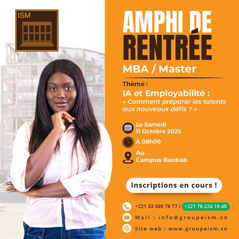 Le samedi 11 octobre 2025, le Groupe ISM, pionnier et leader de la formation supérieure privées en Afrique de l'ouest, a organisé son amphi de rentrée des programmes MBA et Masters à l’amphithéâtre du Campus Baobab, marquant le lancement officiel d’une nouvelle année académique.