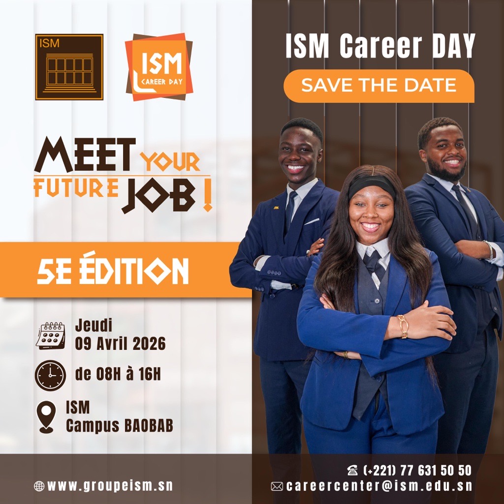 Le Career Center du Groupe ISM sera présent tout au long de cet événement pour accompagner les participants dans leur démarche de recrutement. Pour maximiser leurs chances lors des rencontres avec les recruteurs, il est conseillé aux participants de venir avec plusieurs copies de leur CV et à adopter une tenue professionnelle. Ne manquez pas cette occasion unique de donner un coup d'accélérateur à votre carrière ! Pour plus d'informations, contactez le Career Center du Groupe ISM à l'adresse suivante careercenter@ism.edu.sn ou par téléphone au (+221) 77 631 50 50.