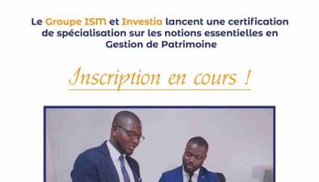 Fidèle à son engagement d’offrir aux entreprises des cadres répondant aux besoins exigeants du monde du travail, le Groupe ISM en partenariat avec le cabinet Investia Gestion du Patrimoine lance une certification en Gestion du Patrimoine. Le démarrage du programme est prévu le 27 janvier 2024. Les séances de formation se feront à l'Ecole de Droit du Groupe ISM. Les inscriptions en cours !